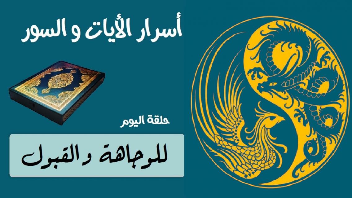 اليوم موضوعنا عن ايات و سور و فوائد للوجاهة و تسهيل الأمور و لتكون محبوبا بين البشر من كل انتى و ذكر أقول تابع الموضوع الى الأخير لاني وضعت فيه فوائدة متعددة و مفرقة و رائعة كروعتكم و أقول الفائدة الألى .. اذا اردت الوجاهة و الوجاهة هي ان يكون شخصك مهابا و كل من يراك يحبك و يقضى حوائجك و تكون كلمتك مسموعة و غرضك مقضي و يتسابق الناس لمودتك و التقرب منك .. فاكتب سورة القمر كاملة و الكتابة تكون يوم الجمعة قبل صلاة الظهر و لا يهم اول الشهر العربي او اخر الشهر العربي و لكن المهم ان تكون متوضأ و مستقبل القبلة و من الأجود و المستحب ان تكون الكتابة بمداد رباني كالزعفران المخلوط بماء الورد و الذي يعرف بالمداد الروحاني و ان تكون الكتابة بقلم من القصب لا عقدة فيه ..